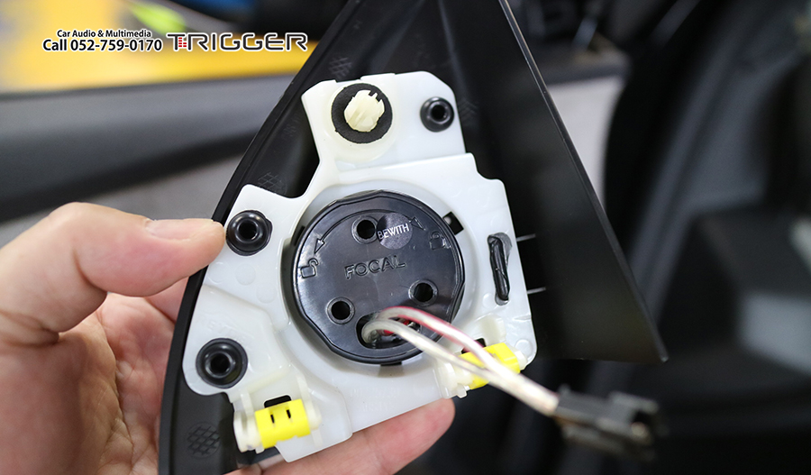 今までの3008と違う!純正スピーカー、薄っ!軽っ! ガラスまでの距離が僅かなのに、なんと!FOCAL PS165SFが付いちゃいます! ツイーターも純正のミラー裏カバーに綺麗に取付できます