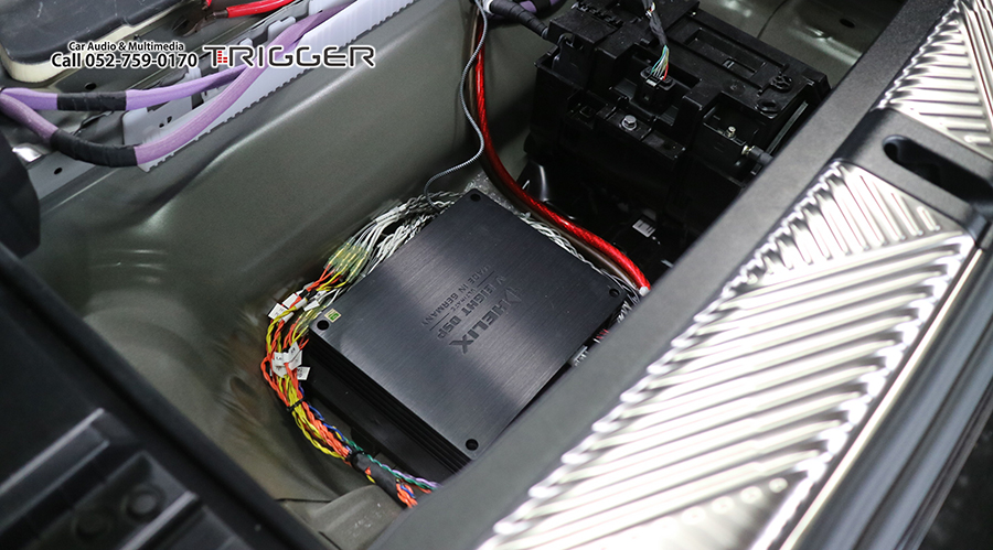 フロントはパッシブネットワークをかえした4スピーカー2ch駆動+ドアサブウーファー