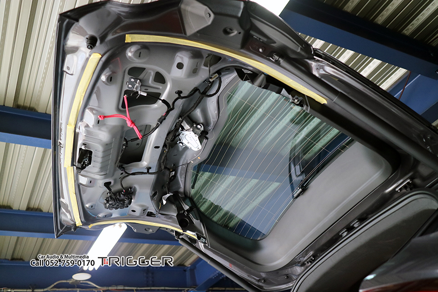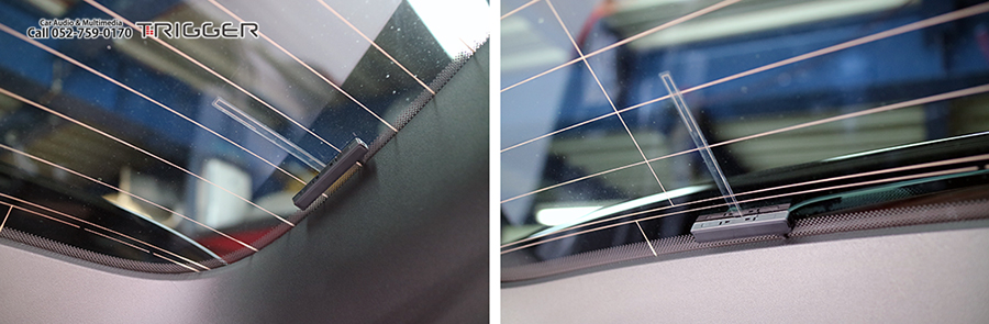 アンテナはフロントガラスではなくリアガラスに施工。見た目の美しさ・受信感度にこだわります。